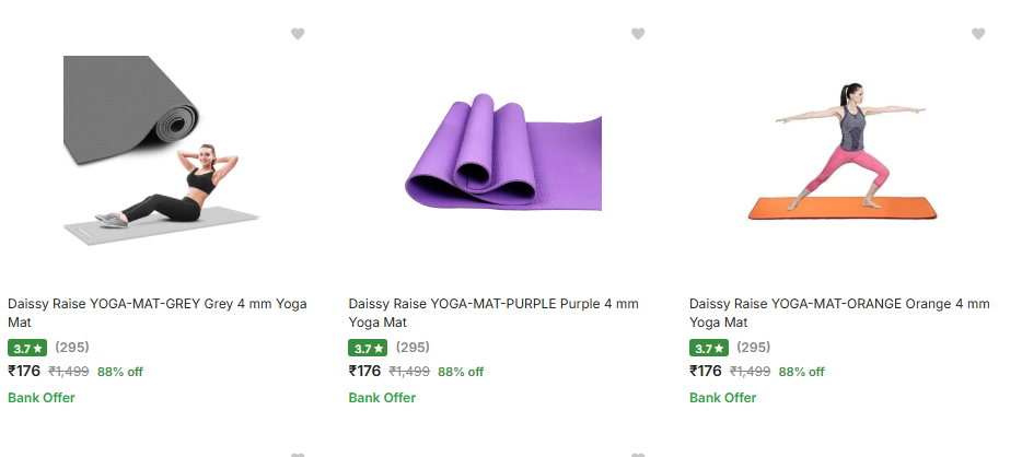 4mm Yoga Mats starting at ₹176, available on Flipkart.
