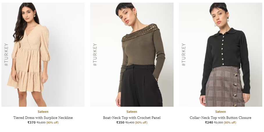 90% Discount | Sateen (Turkey) Women's Clothing , AVailable on Ajio.