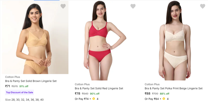 91% OFF | Cotton Plus Lingerie Sets @ Starting at ₹71, Available on Flipkart.