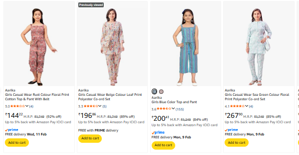 Aarika Girls CO-ords set starting @ ₹144