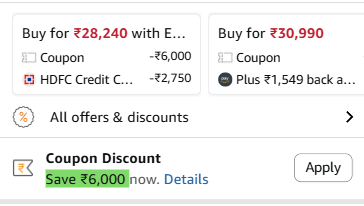 Incl. ₹5000 Off HDFC CC + ₹1000 Off with Coupon