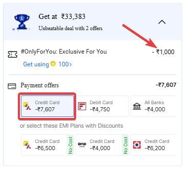 | (-) Supercoin Discount (₹1000 off with 100 Supercoins) | (₹1000) |