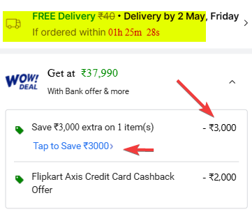 incl. ₹1500 off wih flipkart Axis Bank C C