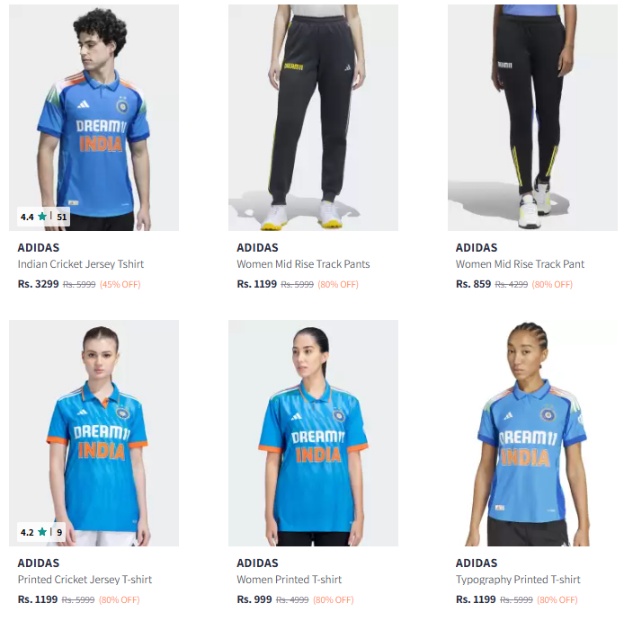Adidas Clothing @ Flat 80% Discount, Available on Myntra.