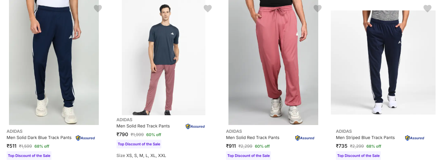 Adidas Men's Track Pants upto 68% Discount | Starting at ₹511 available online in India at an offer price of ₹511 on Flipkart. Discounted Price: ₹511. This deal was updated by @radhika on 05th October, 2025 at 4:45 PM.