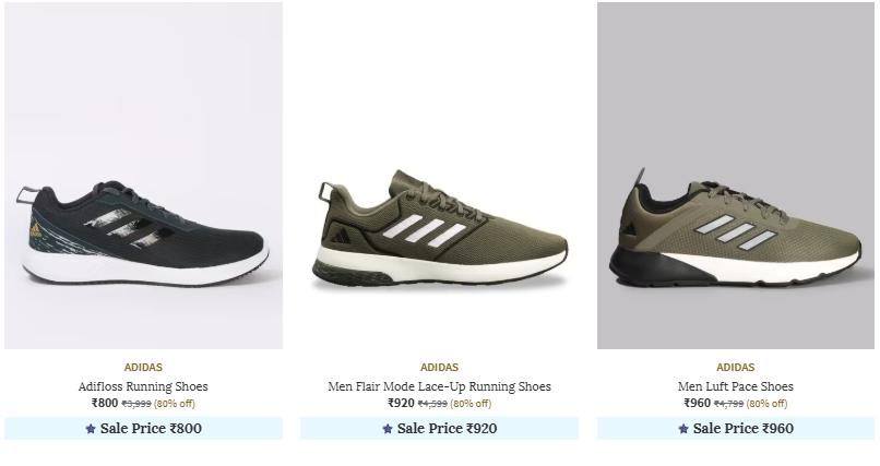 ADIDAS Shoes @ Up to 80% Discount, Available on Ajio.