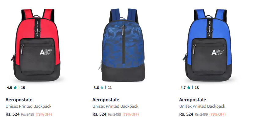 Aeropostale Backpacks upto 79% Discount is available on Myntra.