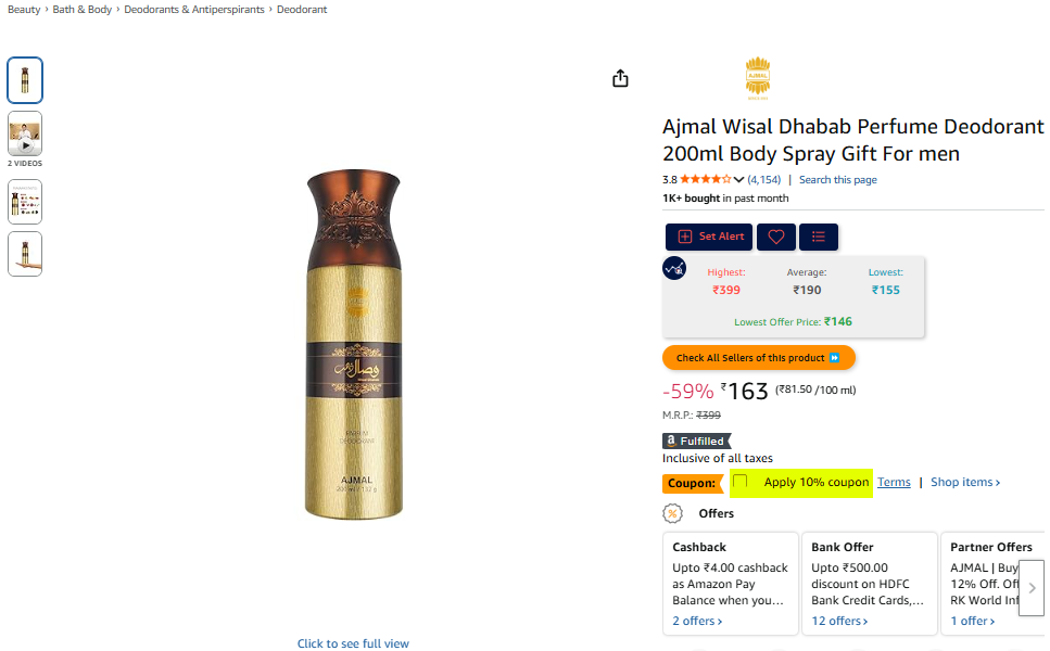 Ajmal WisalDhahab Deodorants Men & Women (200 ml, Pack of 1)