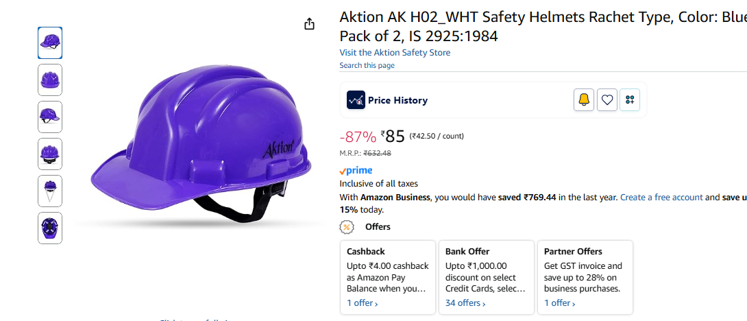 Aktion AK H02_WHT Safety Helmets Rachet Type, Color: Blue, Pack of 2, IS 2925:1984
