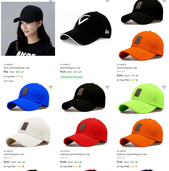 Alamos Caps @ Start ₹92, available on Flipkart.