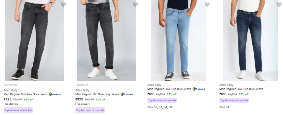 Allen Solly Men Regular Jeans Flat 62% Discount on Flipkart