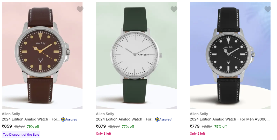 Allen Solly Men's Wrist Watches upto 79% Discount is available on Flipkart.