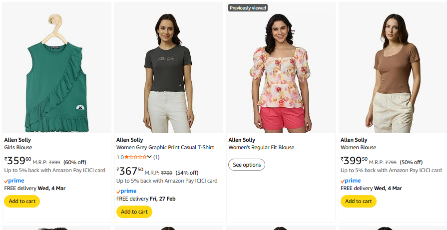 Allen Solly Women Clohes Minimum 60% Discount
