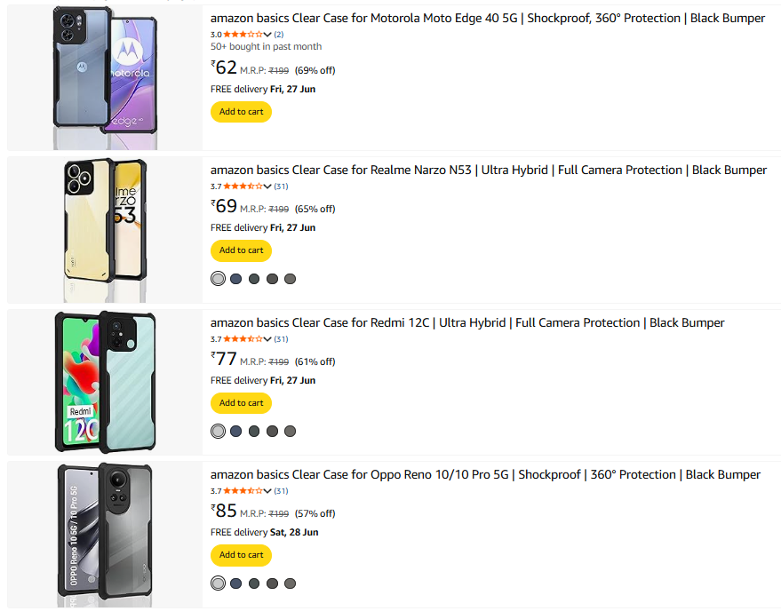 Amazon Basic Mobile Cover Starting @ ₹62