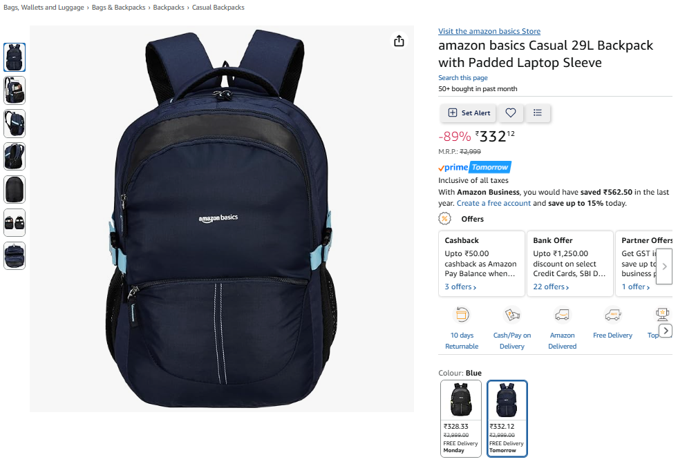 amazon basics Casual 29L Backpack with Padded Laptop Sleeve.