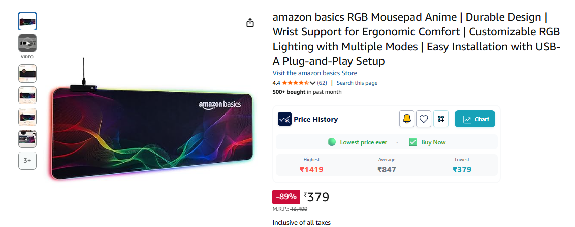 amazon basics RGB Mousepad Anime | Durable Design | Wrist Support for Ergonomic Comfort | Customizable RGB Lighting with Multiple Modes | Easy Installation with USB-A Plug-and-Play Setup.