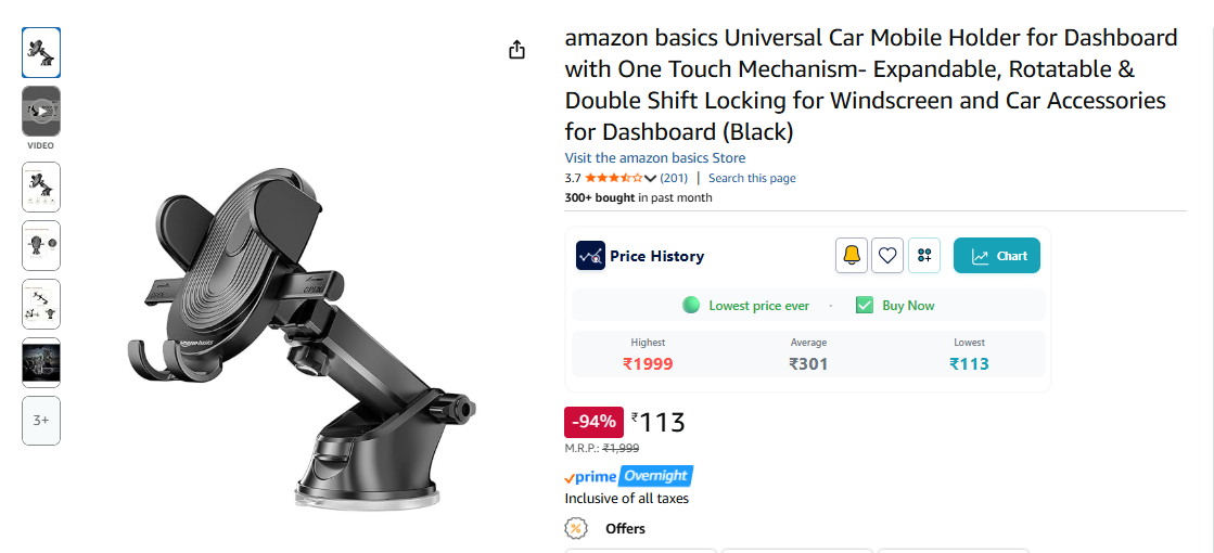 amazon basics Universal Car Mobile Holder for Dashboard with One Touch Mechanism- Expandable, Rotatable & Double Shift Locking for Windscreen and Car Accessories for Dashboard (Black).