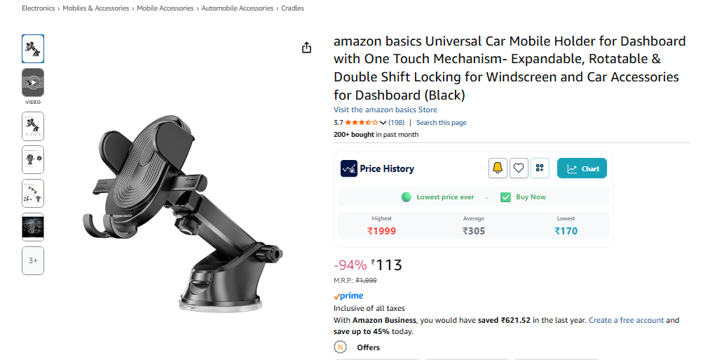 amazon basics Universal Car Mobile Holder for Dashboard with One Touch Mechanism- Expandable, Rotatable & Double Shift Locking for Windscreen and Car Accessories for Dashboard (Black)