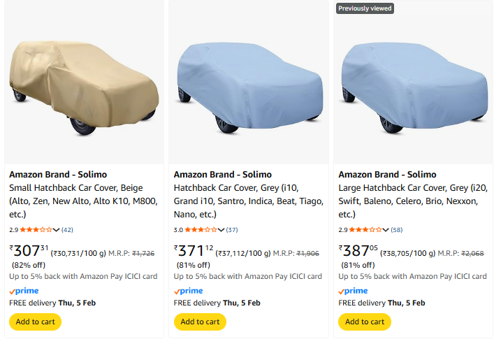 Amazon Brand - Solimo Car Cover @ Starting ₹307, available on Amazon.