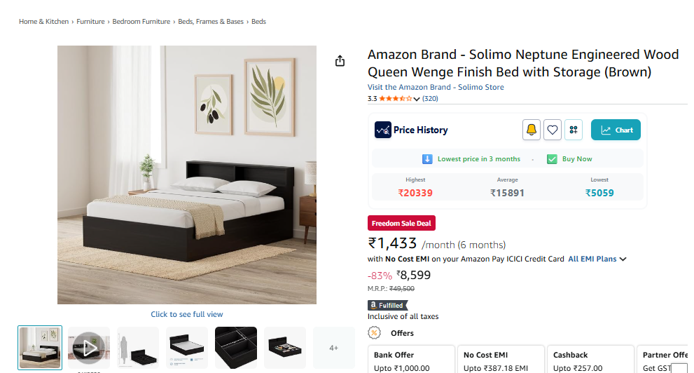 Amazon Brand - Solimo Neptune Engineered Wood Queen Wenge Finish Bed Amazon Brand - Solimo Wenge Finish Bed(Brown)