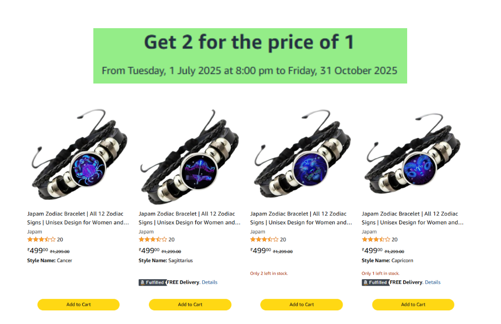 Amazon Offer: Get 2 for the price of 1 On Jewellery