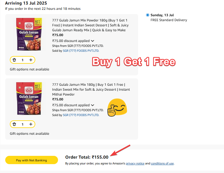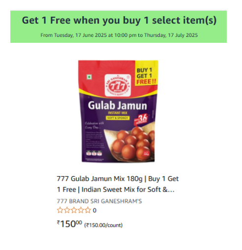 Amazon offers : Buy 1 Get 1 Free