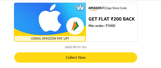 Amazon Rewards : Flat ₹200 Cashback on App Store Code available online in India on Amazon. Offer Note: Valid till 1st October 2025. This deal was updated by @radhika on 19th September, 2025 at 5:11 PM.
