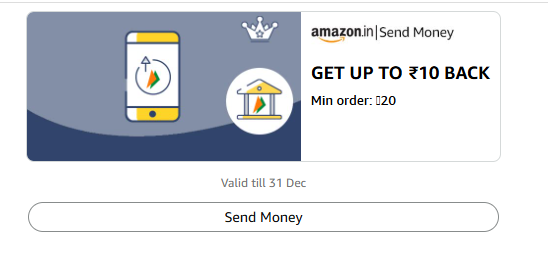 Amazon Rewards : Upto ₹10 Cashback on Send Money available online in India on Amazon. Offer Note: Valid till 31st December 2025. This deal was updated by @radhika on 19th September, 2025 at 3:33 PM.