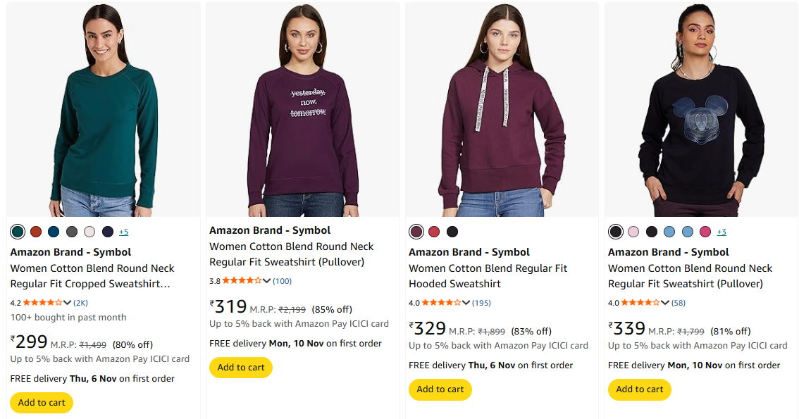 Amazon Brand - Symbol Women's Sweatshirts upto 85% Discount is available on Amazon.