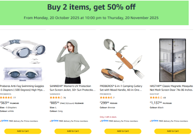 Amazon Offer : Buy 2 items & get 50% off on Daily use Products.