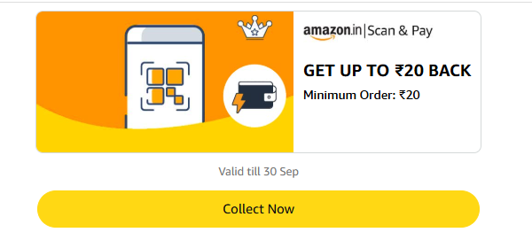 Amazon Rewards : Upto ₹20 Cashback on Scan & Pay available online in India on Amazon. Offer Note: Valid till 30th September 2025. This deal was updated by @radhika on 19th September, 2025 at 4:40 PM.