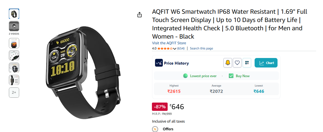 AQFIT W6 Smartwatch IP68 Water Resistant | 1.69\' Full Touch Screen Display | Up to 10 Days of Battery Life | Integrated Health Check | 5.0 Bluetooth | for Men and Women - Black.