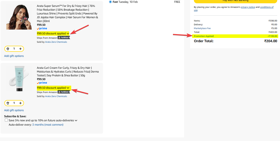 ₹199 worth qualifying items 🛒 add karein, 1 benefit item 🎁 select karein — free benefit checkout par auto-apply ho jayega ✅