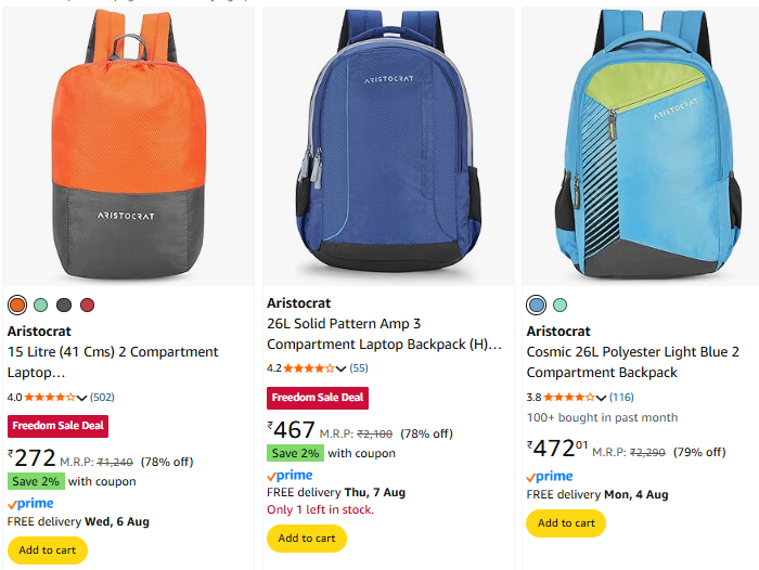 Aristocrat Backpack Starting @ ₹272 on Amazon