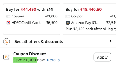 | (-) 🎫 Coupon | ₹1000 |