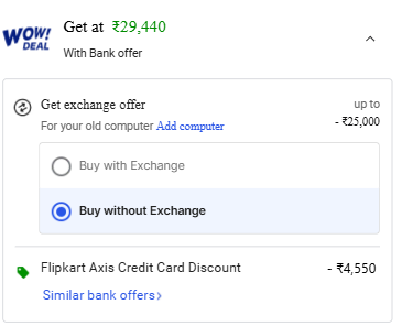 incl. ₹1500 off wih flipkart Axis Bank C C