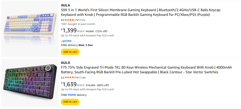 AULA Keyboard Minimum up to 90% Discount