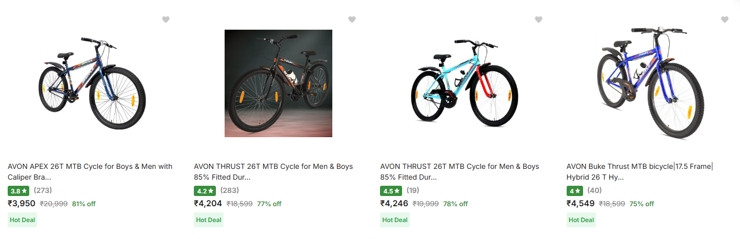 Avon Non Geared Cycles upto 81% Discount is available on Flipkart.