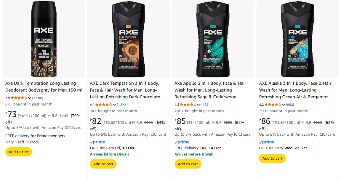 Axe Beauty Products upto 70% Discount | Starting at ₹73 is available on Amazon.