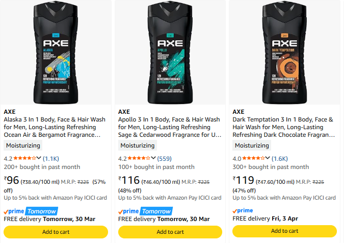 Axe Bodywash Starting @ ₹96 on Amazon.