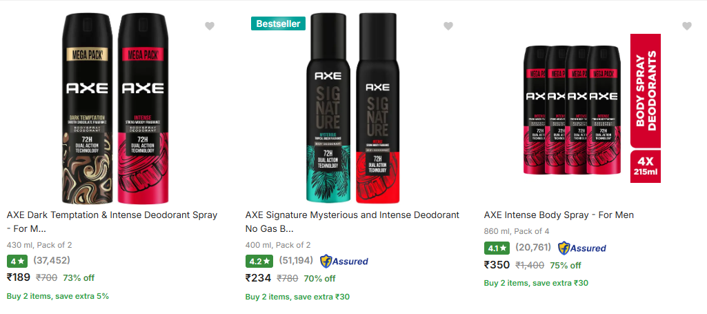 Axe Deodorant Spray upto 75% Discount is available on Flipkart.