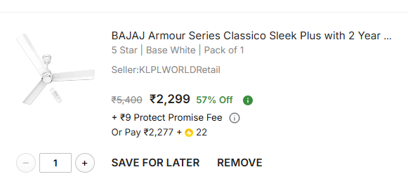 BAJAJ Armour Series Classico Sleek Plus with 2 Year Warranty 1200 mm Ceiling Fan (5 Star | Base White | Pack of 1)