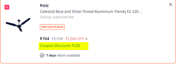 Bajaj Celestial Blue and Silver-Toned Aluminium Trendy EE 1200 mm Ceiling Fan.