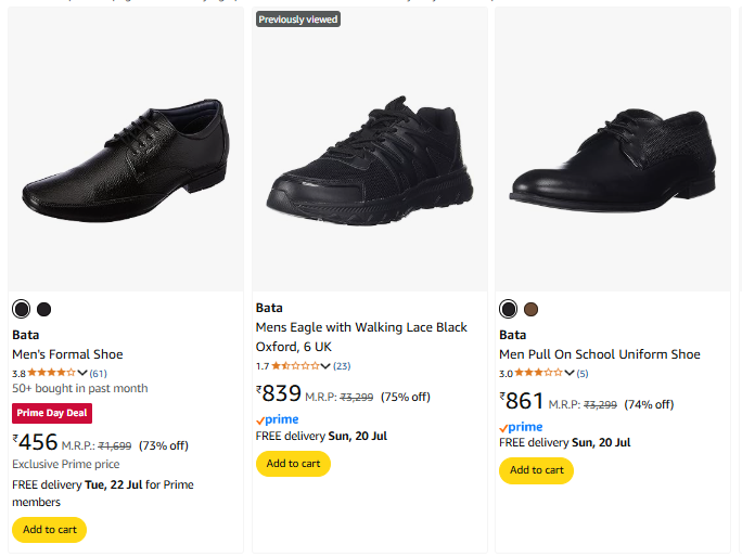 Bata Men's Shoes Starting @ ₹456 On Amazon.