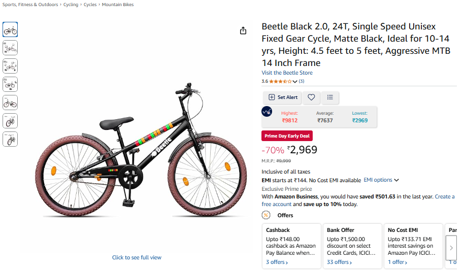 Beetle Black 2.0, 24T, Single Speed Unisex Fixed Gear Cycle, Matte Black, Ideal for 10-14 yrs, Height: 4.5 feet to 5 feet, Aggressive MTB 14 Inch Frame.