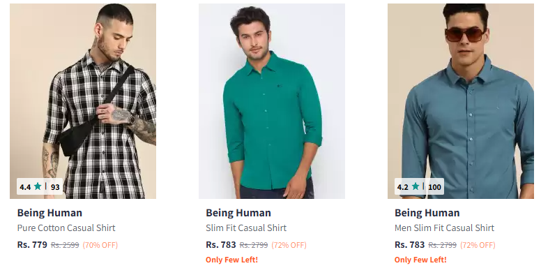 Being Human Men Fashion Shirt Flat 70% Discount