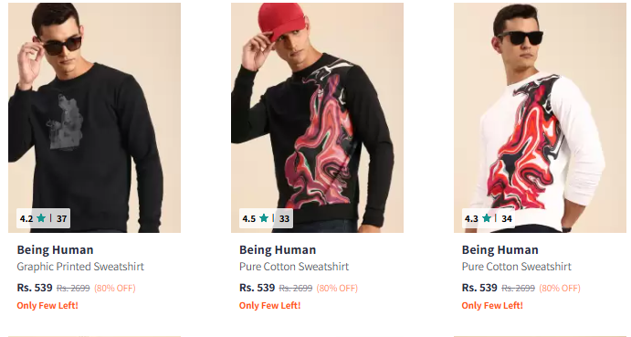 Being Human Men Fashion T-shirt Minimum 80% Discount