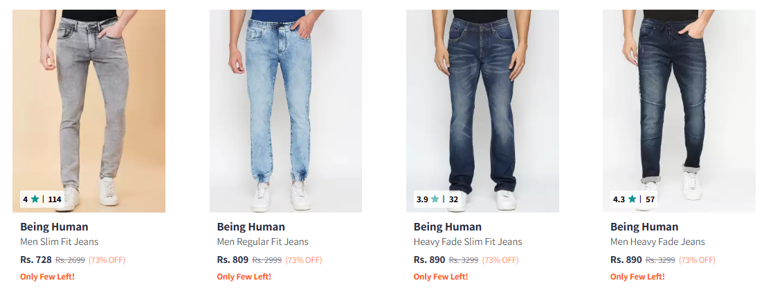 Being Human Men's Jeans upto 73% Discount is available on Myntra.