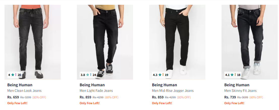 Being Human Men's Jeans upto 80% Discount is available on Myntra.