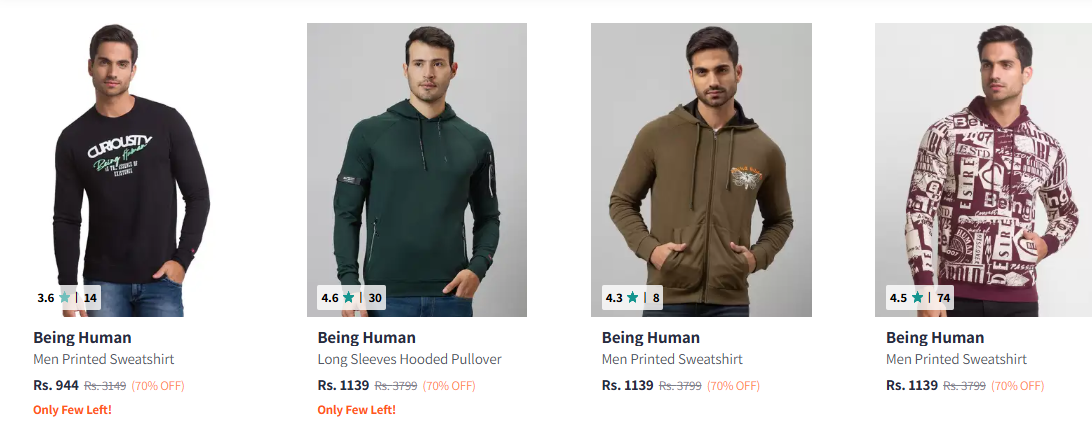Being Human Men's Sweatshirts at minimum 70% Discount is available on Myntra.